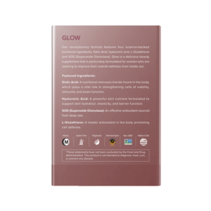 GLOW is formulated with science-backed functional ingredients, including potent antioxidants that work at the cellular level. The feature ingredients in GLOW include Hyaluronic Acid, Sialic Acid from Edible Bird’s Nest, Superoxide Dismutase (SOD), L-Theanine, and L-Glutathione.