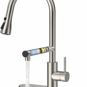 Kitchen Faucet, 2024 Upgraded Filter Water Kitchen Faucet with Pull Down Sprayer, Brushed Nickel Stainless Steel High Arc 1 Or 3 Hole Kitchen Sink Faucet for Remove Chorine and Harmful Substances