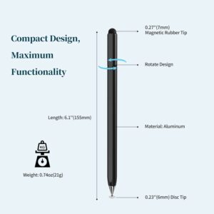 - 【Newly Designed 2-in-1 Stylus】:Based on the rotate design for hidden disc tip, our stylus adds a sensitive magnetic rubber tip at the other end. 2 in 1 stylus pen would free your finger and offer higher sensitive and respond on screen.Perfect for clicking icons, writing, drawing, or playing games.
